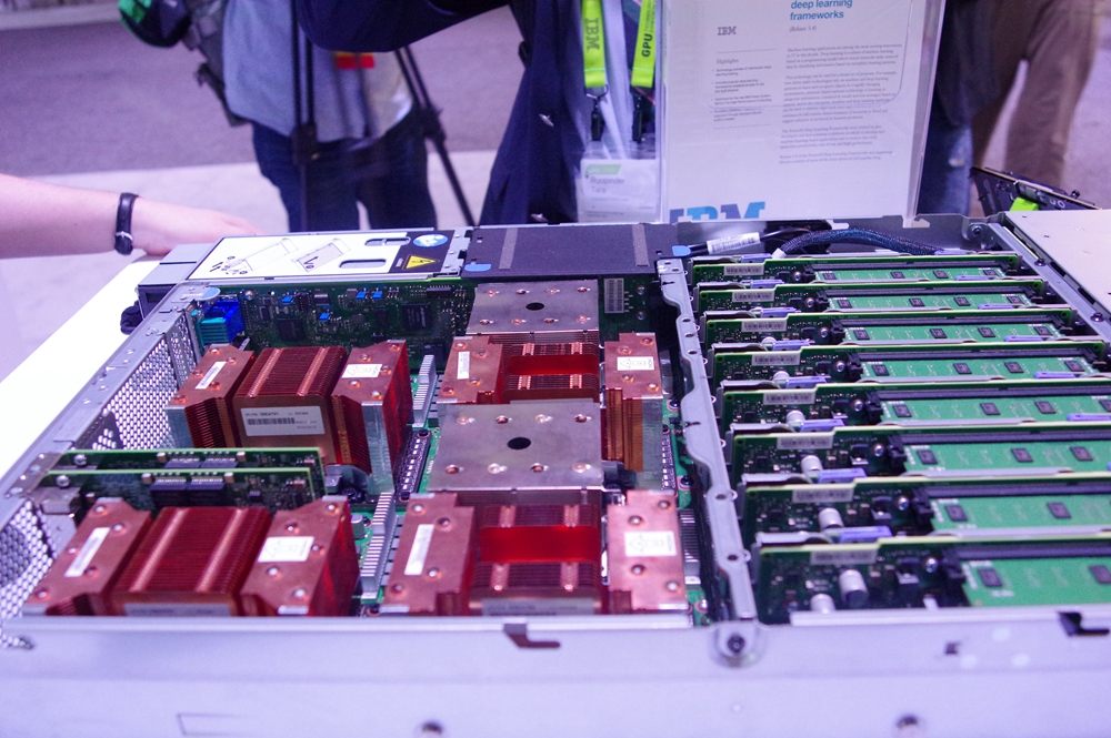在去年NVIDIA发表Pascal构架的加速器Tesla P100时,也正式宣布能串接多个GPU以及让CPU与GPU拥有对等权限的NVLink信道技术,此技术当时就是与IBM共同开发,而在GTC大会的展示区中,IBM也展出这款目前唯一能够进行CPU与GPU真并行计算的服务器。