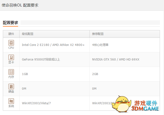 现在一些大型软件或者游戏为了促进销售,往往推荐配置容易让用户产生一定误区。那就是推荐的最低运行内存容量就是本机的实际内存么?实际上,如果考虑运行游戏或者软件时,还要留一部分内存给系统后台以及一些后台运行的其他软件,比如迅雷、QQ以及常用的杀毒安全防护软件。这样,有些程序推荐配置的4GB内存甚至2GB内存不仅远远不够了,甚至使完全不合理。例如下面《使命召唤OL》游戏的应用情况。