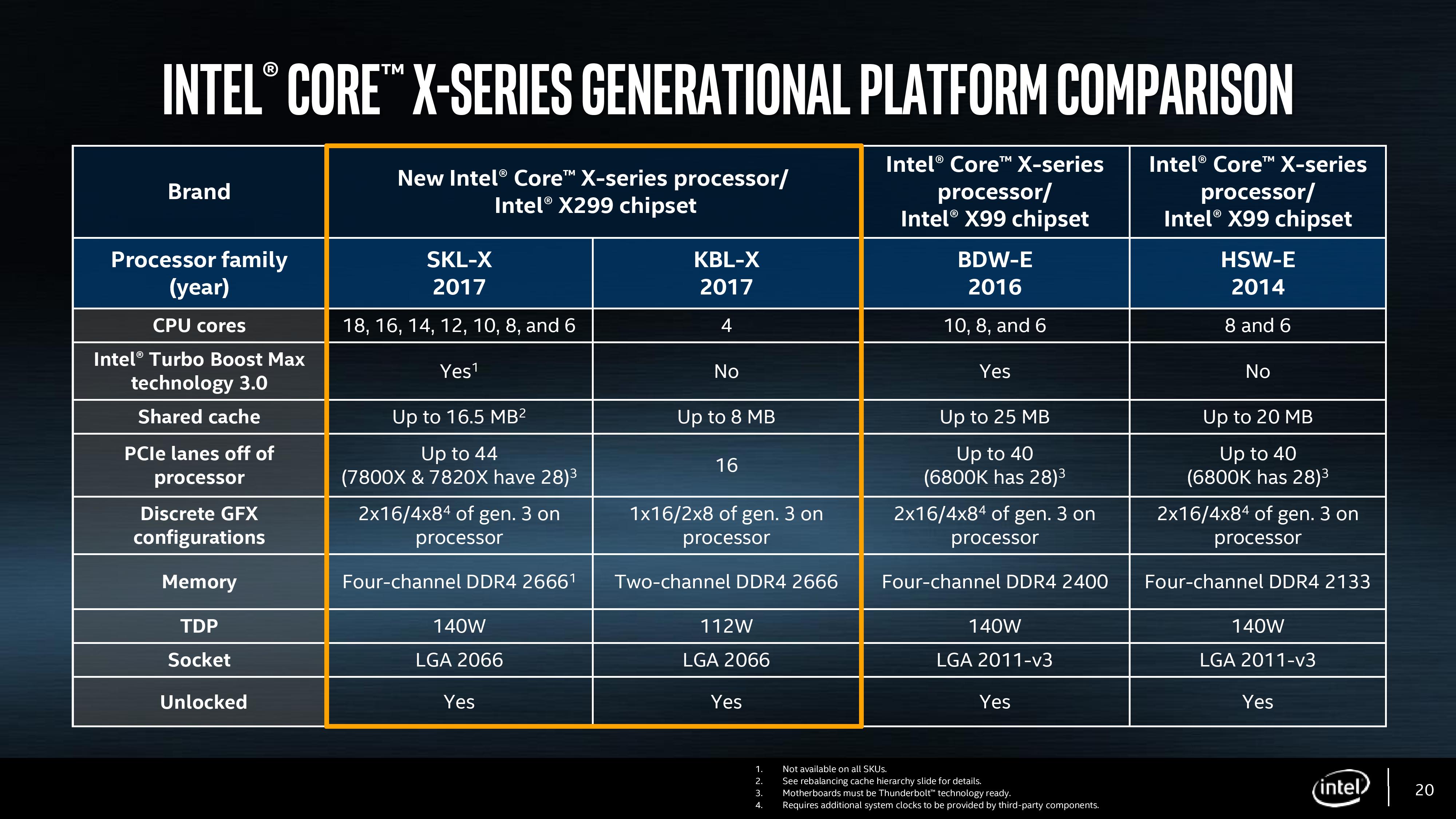 英特尔Core-x大家庭:18,16,14,12,10,8,6和4核心处理器且同在X299 LGA2066平台