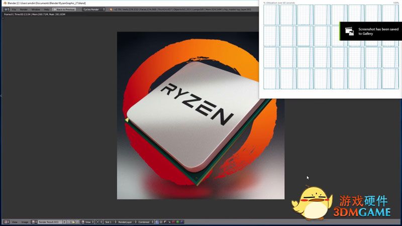 对于设计师和工程师这种对生产效率要求极高的朋友,提高系统CPU核心数是最简单粗暴的方法。AMD也为现场观众做了现场实体演示。测试还是采用了以往的Blender测试项目,整个渲染过程吃满了全部32个线程,仅用13.04秒就完成了整个渲染!虽然不确定现场用的是多高的渲染率,但如果对比150、100Render下Ryzen 7 1800x的数据,同一张图后者需耗时35秒、28~30秒,效率妥妥的提升了一倍!