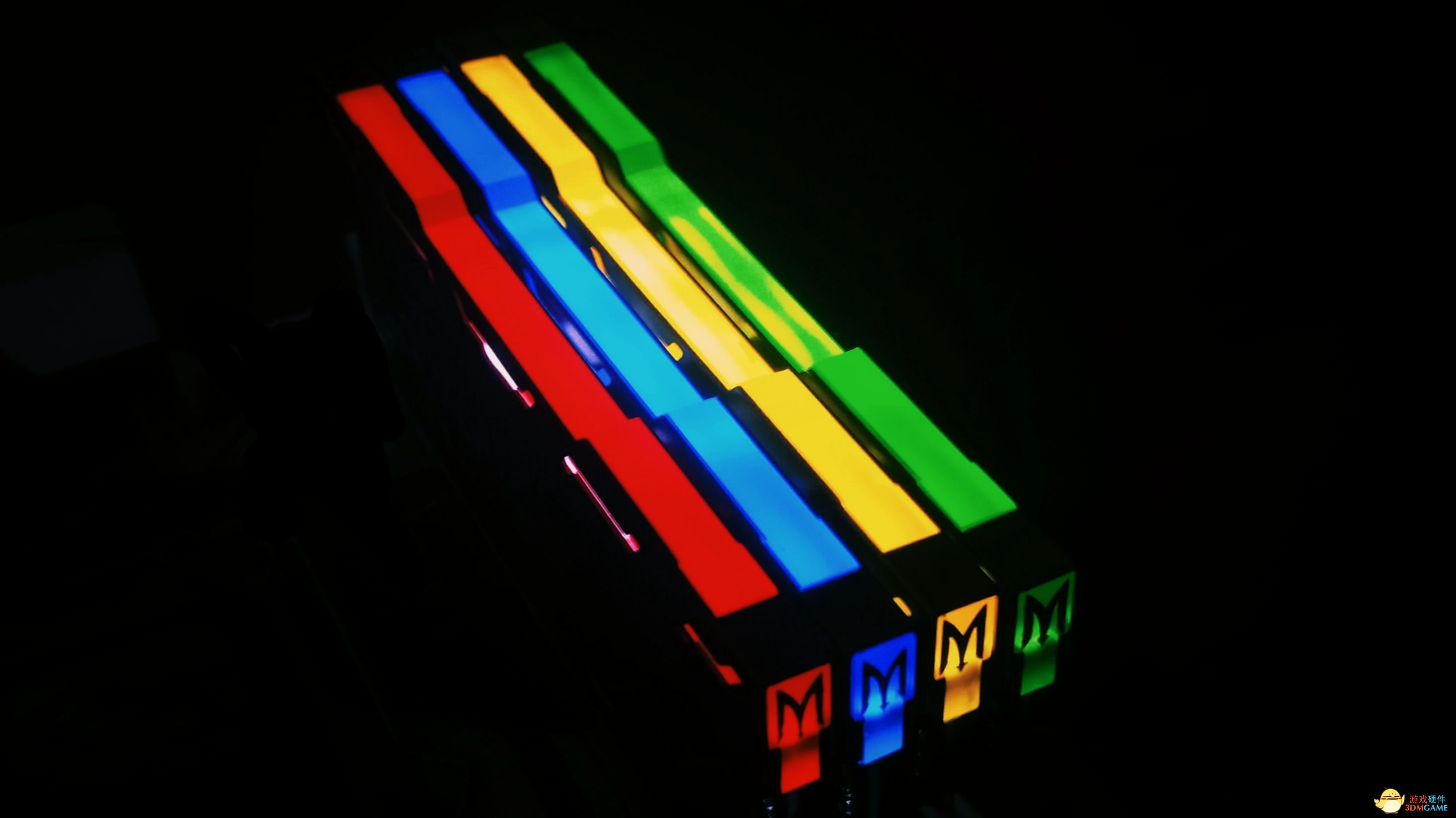 GAMER第二代内存加入了匀光技术第二代,实现了更多灯光颜色,并且带呼吸灯效果,呼吸间隙为4秒。在通电状态下,左右两侧独有的GAMER系列“M”字与背光效果,体现设计细节。
