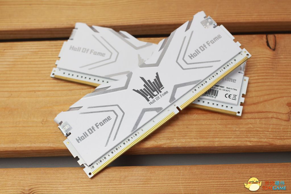 HOF DDR4内存承袭影驰名人堂系列尊贵纯白血统,白色信仰倾注在内存的细节之中,白色散热板,延伸到内存条的上侧。散热板正面的线条形成了“X”标志,簇拥着名人堂的LOGO。