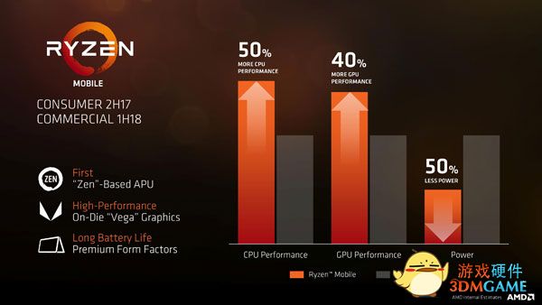 当然AMD并不会给牙膏厂太多的时间,AMD下半年将陆续发布基于Zen架构的APU,目前坊间的PPT显示,AMD新一代APU的CPU性能对比第七代APU提升了50%,而GPU核显的性能也有40%的提升,能耗就更不用说了,直接降低50%!!厉害了我的哥。