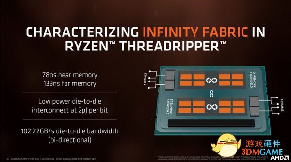 AMD利用自行开发的Zen处理器微架构,规划2组Core Complex合并在一起的IC设计,从服务器EPYC至桌上型Ryzen 3,都是由此晶粒组合或屏蔽部分区块而来。近日正式发售的Ryzen Threadripper为启用2个晶粒的产品,各晶粒自行控制双通道內存,这也带来过去罕见的NUMA架构。