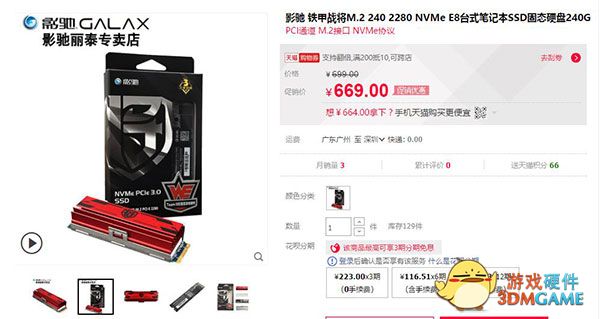目前铁甲战将 240-M.2在天猫影驰官方旗舰店售卖699元,自带散热黑科技带给你不一样的体验。