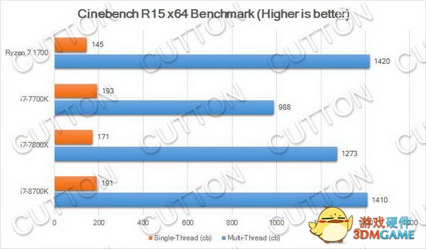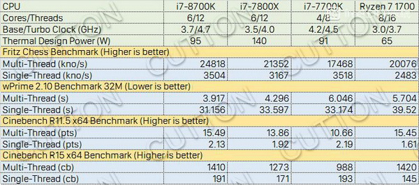 Intel Core i7 - 8700k、i7 - 7700k、 i7 - 7800x和AMD Ryzen 7 1700对比: