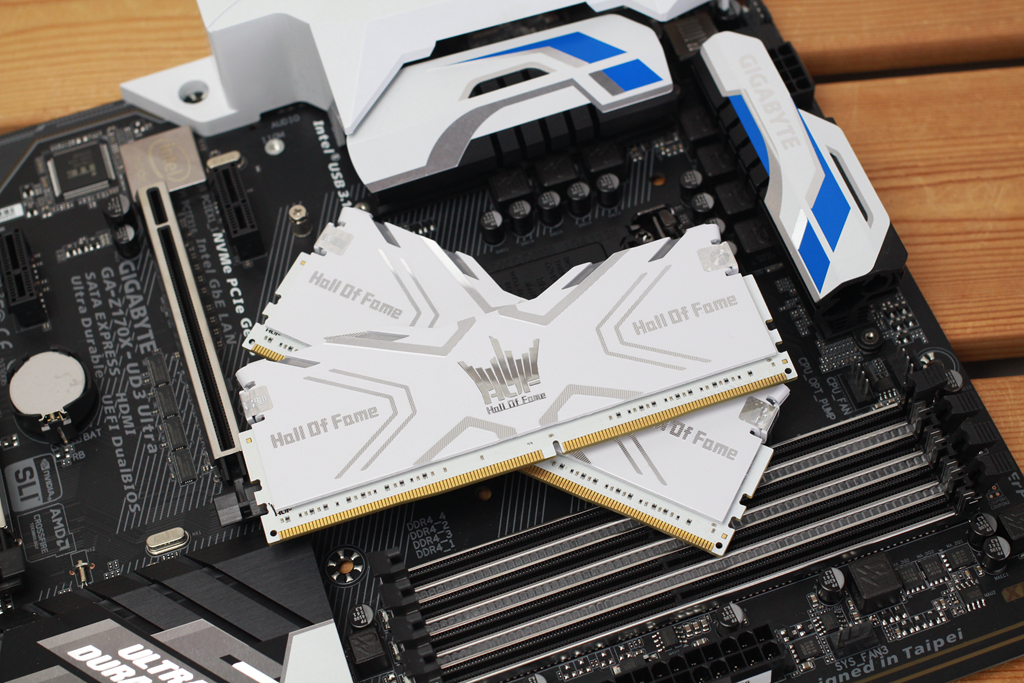 HOF DDR4-3000 8G沿袭了名人堂系列的白色外观,从白色的散热片到白色PCB板,纯白信仰倾注在内存的细节之中。散热板正面的线条形成了“X”标志,簇拥名人堂的LOGO,气势非凡。
