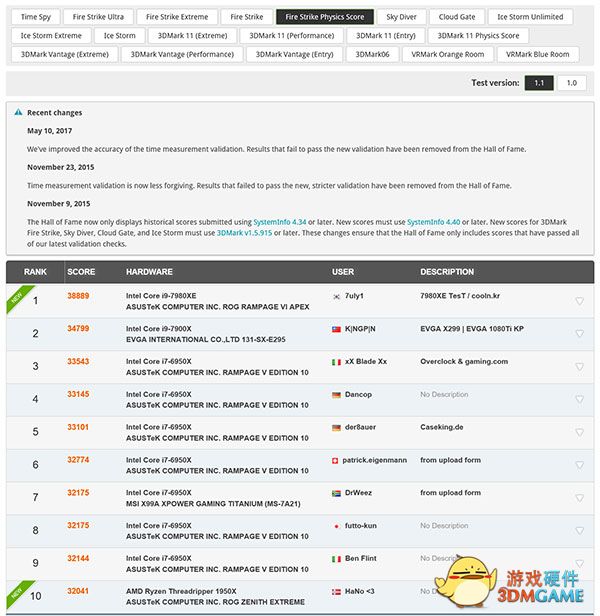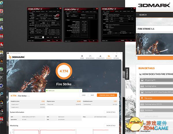 首先配用的显卡是NVIDIA GTX750 TI的,配合主板华硕VI APEX然后就是DDR4的内存条,再投入3Dmark测试,测试完的结果我们单看CPU的成绩也是令人惊讶!