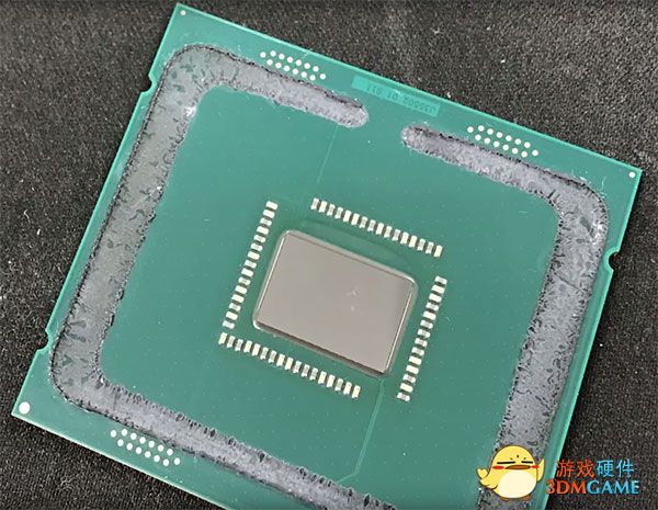 对比Kaby Lake X (4核心),Skylake X (10核心)开盖后的核心照片,我们可以看到,两者间的区别在于封装模式上,前者采用的是单PCB模式和以前X99、Z270架构上的老产品一致,而后者则是新的封装形式,大家可以看到CPU上明显多了一片PCB。