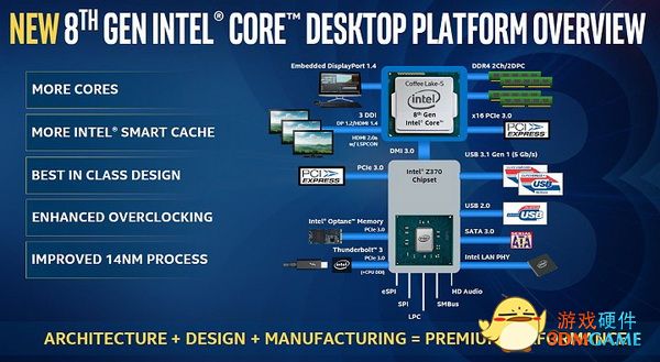 其余在官方简报里没有提报的部分,Coffee Lake-S将使用自家的14nm++制程制造,GPU绘图核心架构部分则和Kaby Lake-S相同,但将会透过驱动程式最佳化以及提升运作时脉方式增加性能。此外加强电力供应部分或许也是第八代Core i系列处理器无法向后兼容200系列处理器的原因之一,据传虽然2者均使用LGA 1151脚位插槽,但是第八代处理器在电源供应针脚定义有所变化和增加,因此必须改用新设计过的主机板。笔者就这点向Intel要求更为详细的图片或针脚定义资料,有任何进展将随时更新。