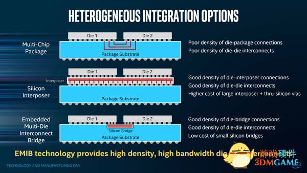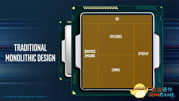 此前的技术会议上,intel公开过 MCM模块化的设计方案,其中CPU核心和GPU核心为10nm,I/O和通讯模块用14nm,其他IP用22nm。