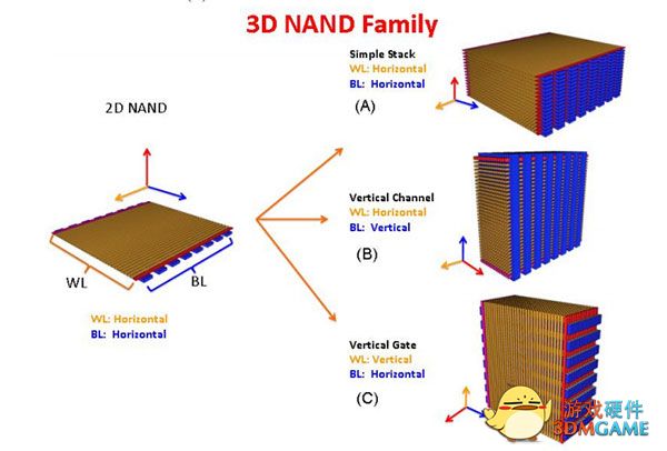3D NAND,顾名思义,它是立体堆叠的。我们以盖楼为例子,从2D NAND到3D NAND,就像平房到高楼大厦,建筑面积的增加意味着可以容纳的东西更多。理论上来讲,3D NAND可以无限堆叠。