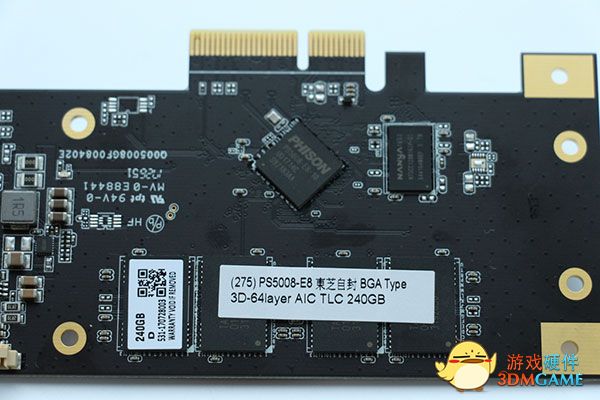 得益于3D NAND技术,铁甲战将PCI-E AIC SSD搭载的东芝64层3D NAND TLC颗粒单die容量512Gb(64GB),共计4颗组成240G,相对于上一代48层,容量密度提升了65%。