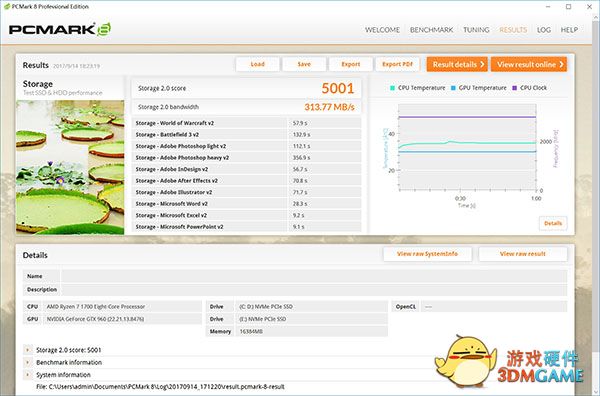 当然,作为SSD测试的权威,PCMark8是少不了的。在测试中,铁甲战将PCI-E AIC SSD拿到了5001分,这个分数在同级别SSD之中仍具有较强的竞争力。