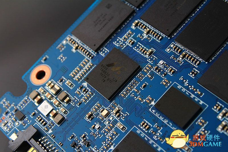WD蓝标固态硬盘中的控制芯片是采用Marvell推出的88SS1074芯片,可支援15/16nm MLC或TLC快闪存储器颗粒以及AES256硬件加密技术,并具备4通道传输设计。控制芯片旁边还有设置了两颗Micron美光推出的DDR3缓存内存颗粒,详细型号为D9RVX。