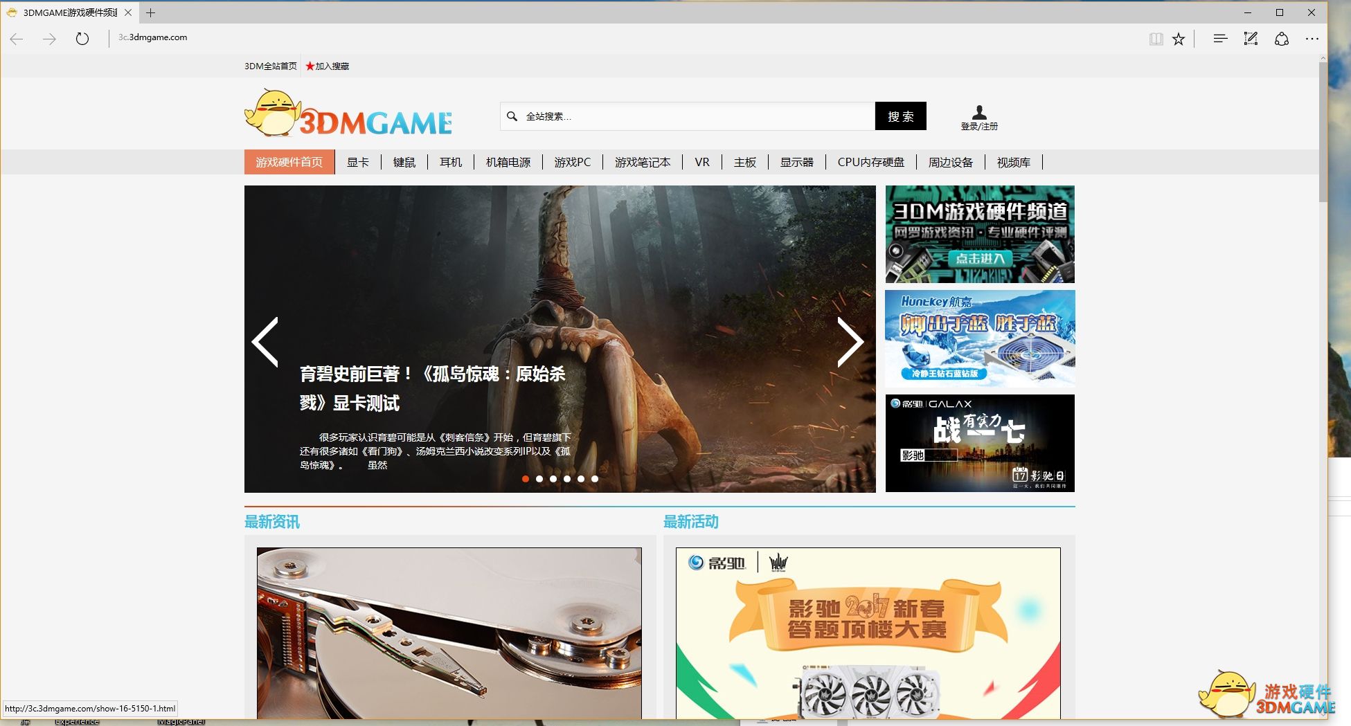打开3DM游戏硬件官方网站速度测试
