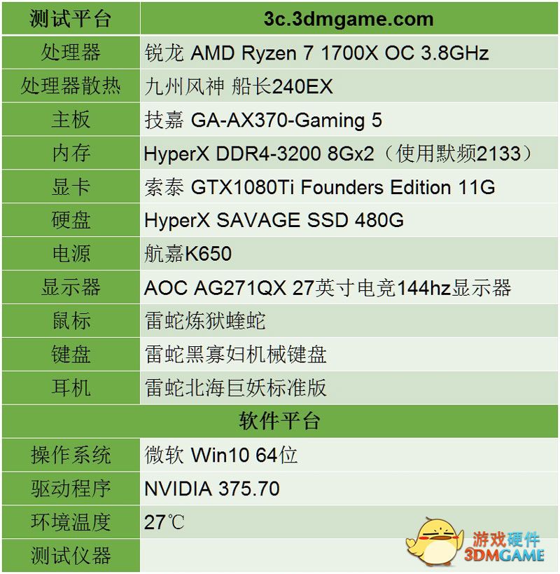 锐龙AMD Ryzen 1700X+GTX1080Ti Founders Edition 11G这套组合可以让今年的新作游戏在4K全高特效下流畅运行,这说明新一代的游戏硬件性能很强,这有助于4K大屏的普及,怎么?你还没有找到高性价比的4K显示器?快来看看郭少的《高性价比4K好选择!AOC U2879VF显示器环境体验!》!