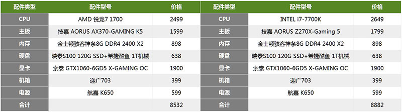 同样在测试开始之前我们先进行一波模拟攒机,看看平台之间的性价比差距!