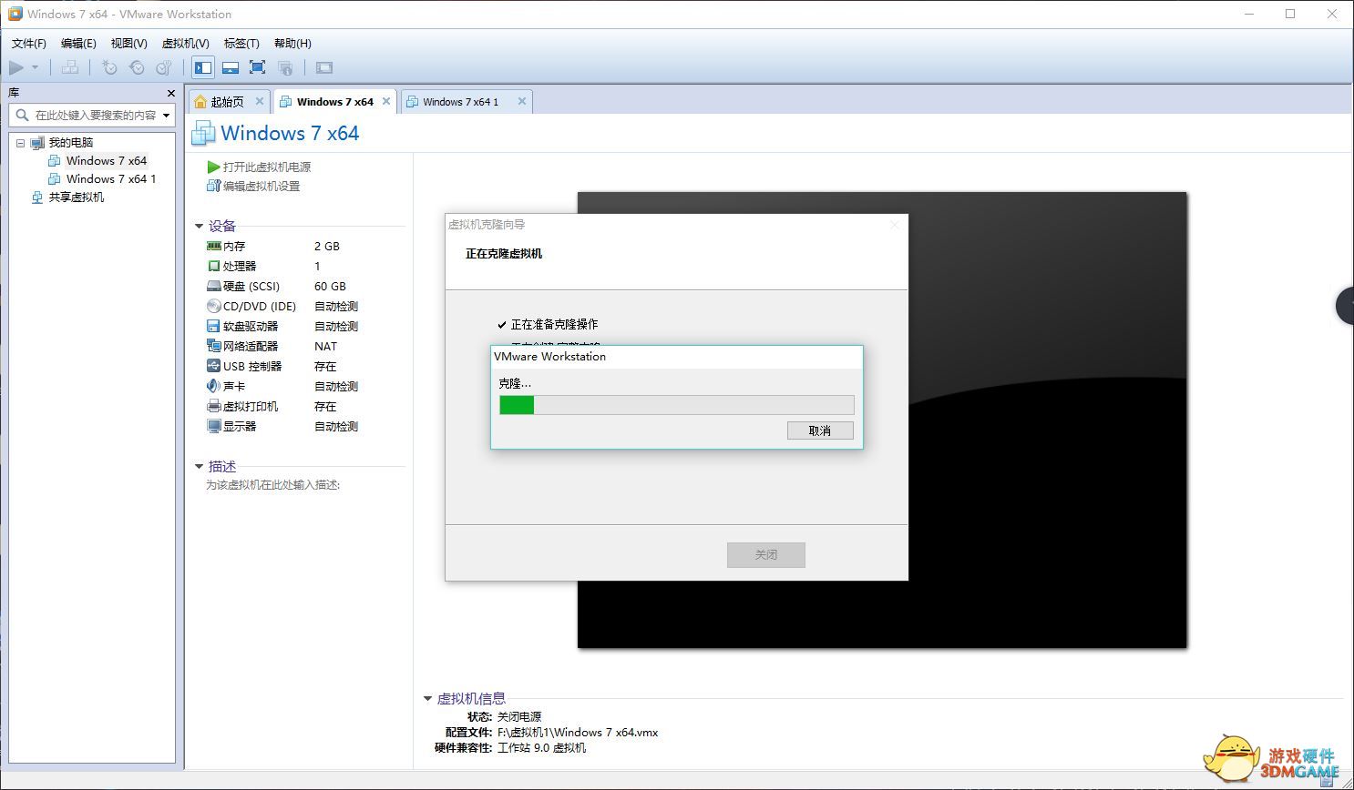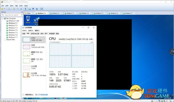 为了保证测试的公平性,首先郭少先用虚拟机全新安装了一个WIN7系统,然后使用虚拟机自带的克隆功能克隆出七个配置相同、安装软件相同的虚拟机!每个虚拟机内存统一分配为2G,CPU为1核心1线程!