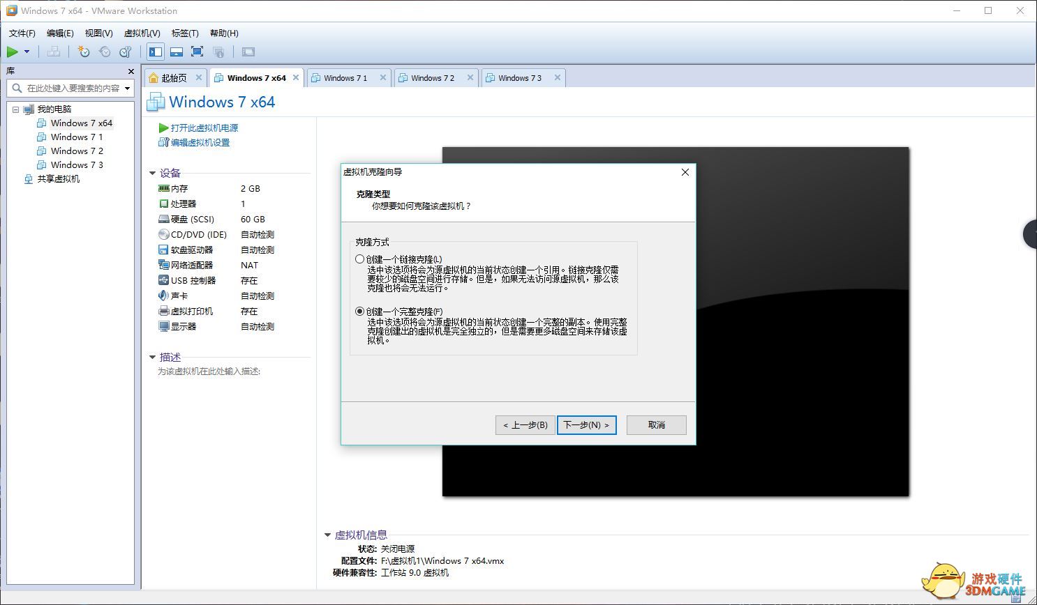 为了保证每一个虚拟机都是独立运作互不影响,郭少采用的克隆方式为“创建一个完整的克隆“!