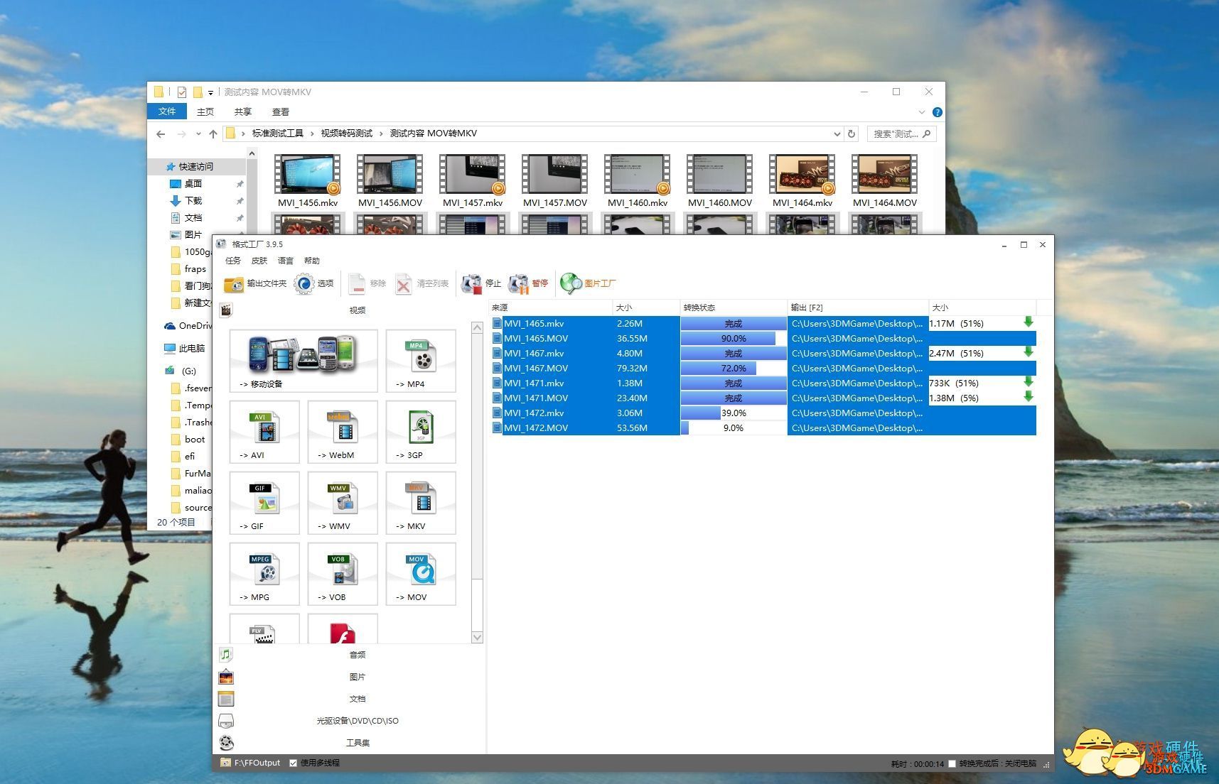 本次测试郭少选择了8部20-50MB不等的MOV格式视频素材,将这些视频素材转换成MKV格式,格式工厂开启多线程处理状态,这个测试非常考验处理器的编码能力和多核性能!