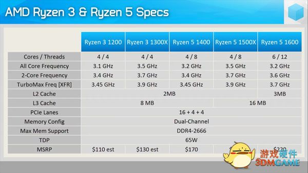 好戏还在后台,苏妈早已看穿一切。据消息称AMD将会在本月底(7月),发布锐龙3系列处理器,配备真四核心四线程,零售价预计会在千元附近,毕竟现在锐龙5 1400在某宝上也就899元。首发会有两款型号,分别是锐龙3 1200和锐龙3 1300X。规格方面,锐龙3 1200的基础频率为3.1GHz,2核心能Turbo到3.4GHz,锐龙3 1300X的基础频率为3.5GHz,2核心能Turbo到3.7GHz。锐龙3全系列配备2MB二级缓存,8MB三级缓存,TDP热功耗设计均为65瓦!