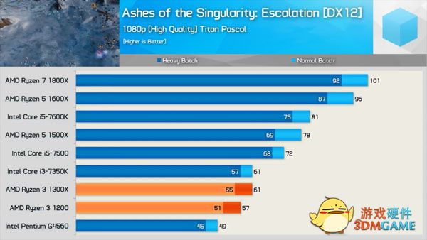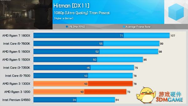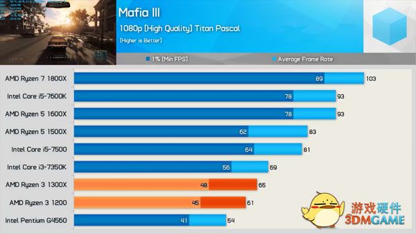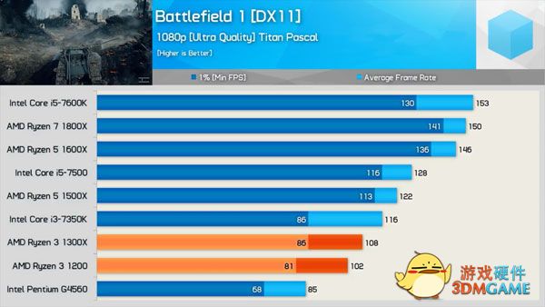 最后是一大波游戏性能对比,少了超线程的加持,锐龙3 1200/1300X的成绩确实比锐龙5系列四核产品稍弱一些的,但碾压神U奔腾G4560是完全没问题,部分游戏依然可以战平号称天下第一的i3-7350K和i5-7500。