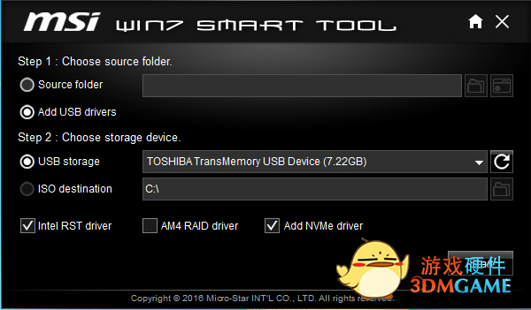 2.使用主板厂商提供的注入工具,将USB3.0驱动以及NVMe驱动加载到U盘,这里以微星MSI Smart Tool为例。
