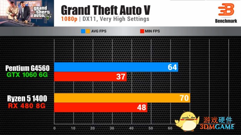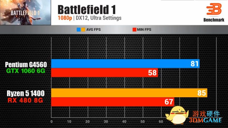 剩下就是一堆游戏对比测试,值得大家注意的是红色部分的最低帧对比,由于多了两颗真核心和四个线程的加持,锐龙5 1400下的游戏最低帧都相当稳,尤其是战争机器、GTA5、战地1、荣耀战魂、杀手6,这种对多线程有做优化的新游大作,配四核八线程绝对没错。