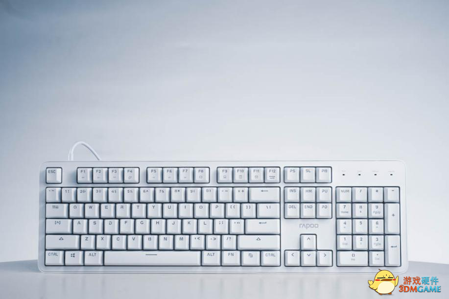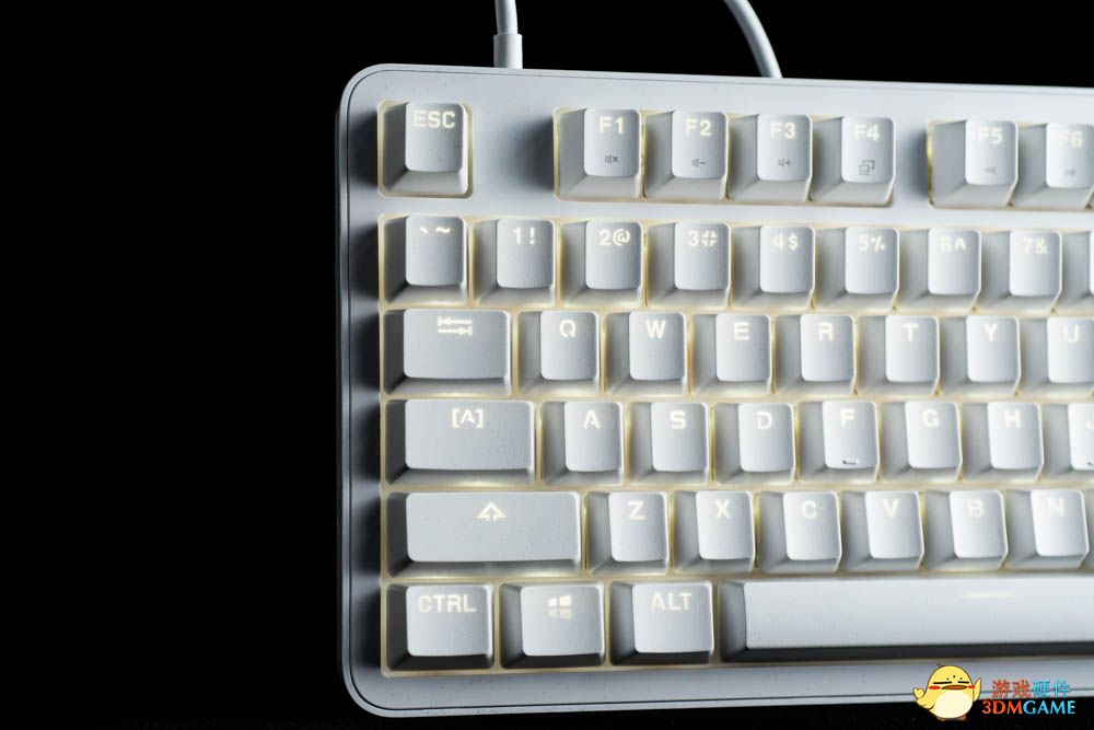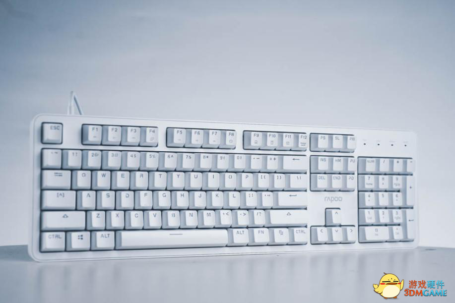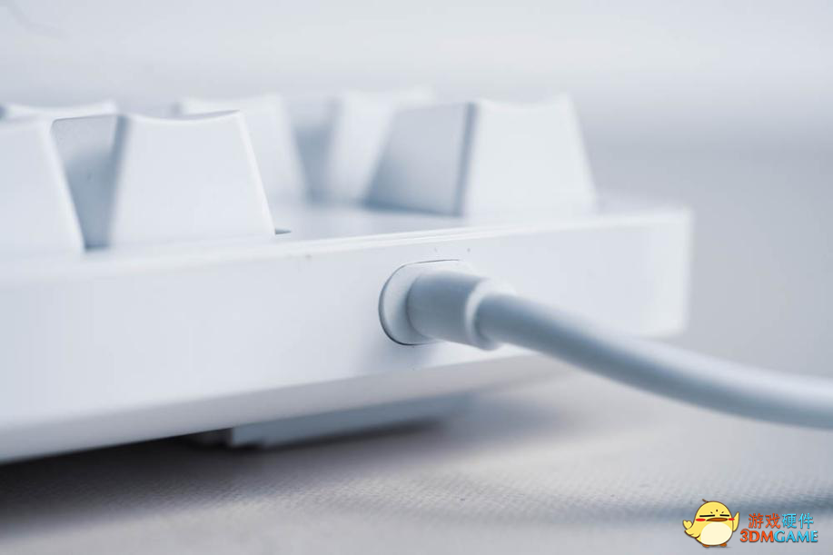 这款键盘通体纯白的外观设计非常讨喜,基本可以融入任何风格的办公空间。从外壳到键帽以及标签、线材,这款键盘全部使用了整齐的白色,给人一种浑然一体的感觉。