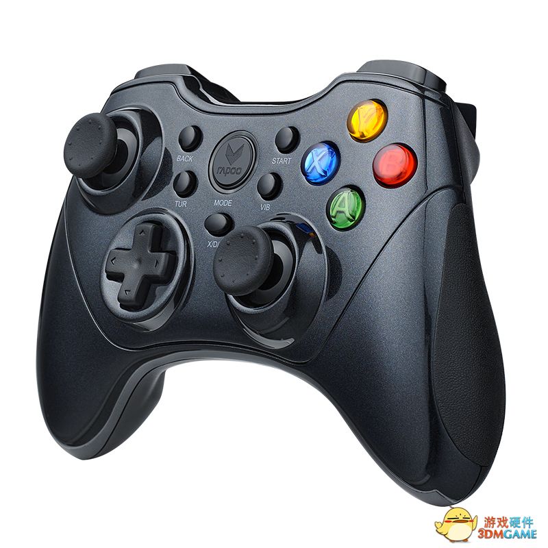 双面彩质,无可挑剔。传承前代之魂,保留其独特的双面材质,双重质感。正面的喷砂镜面与背面的硬质磨砂相得益彰,一面吸睛感染,一面舒适握感,真正地做到了全面兼顾。正中央的金属V系列专属Rapoo键,周围散发霜冻之蓝光的LED灯,配上ABXY立体晶透键帽,质感出众,大气方成。
